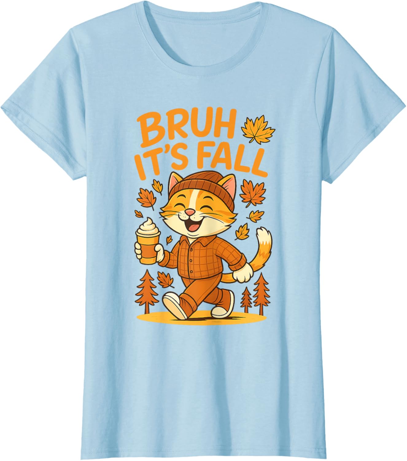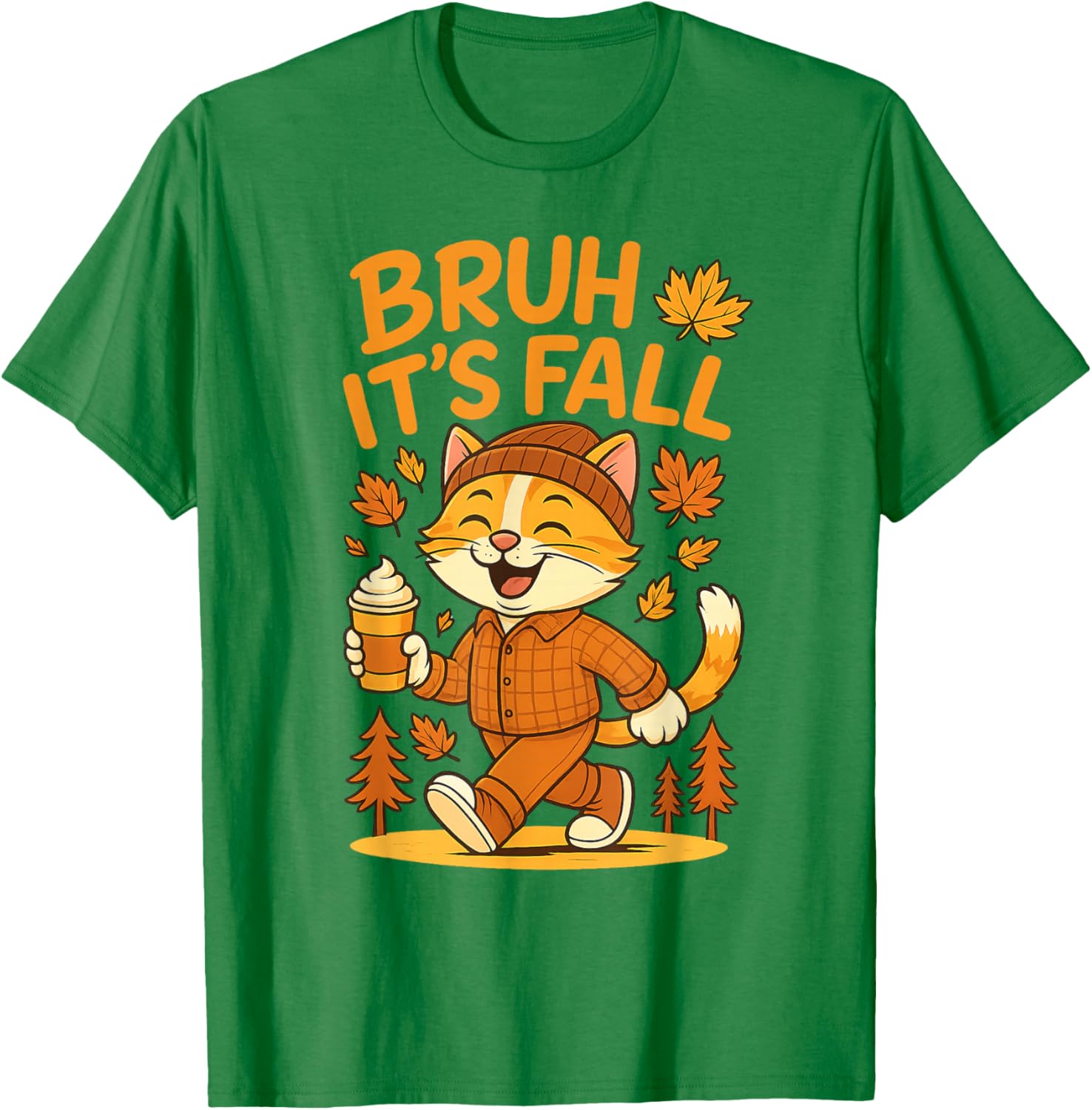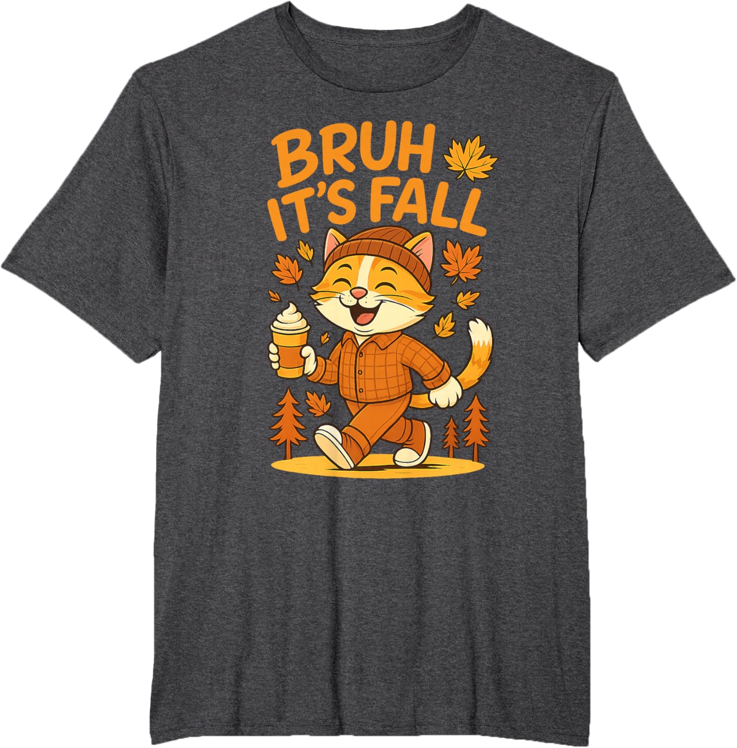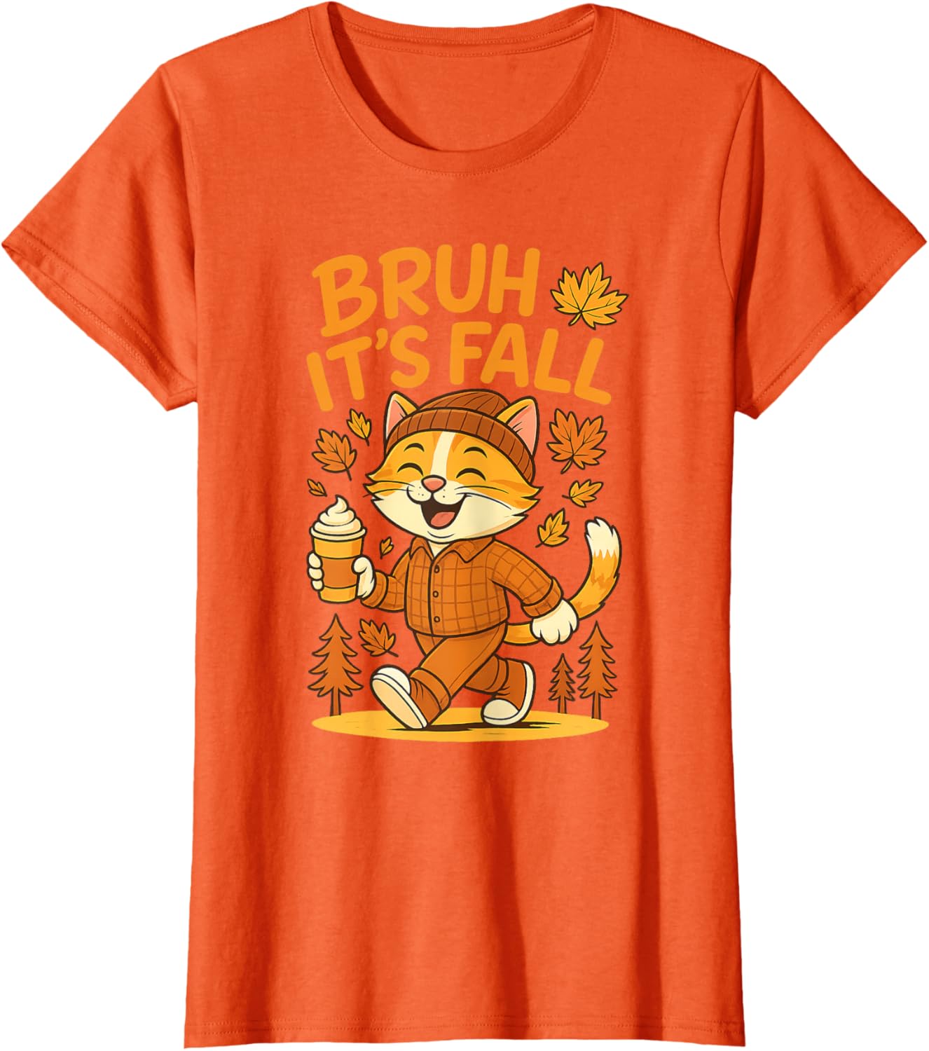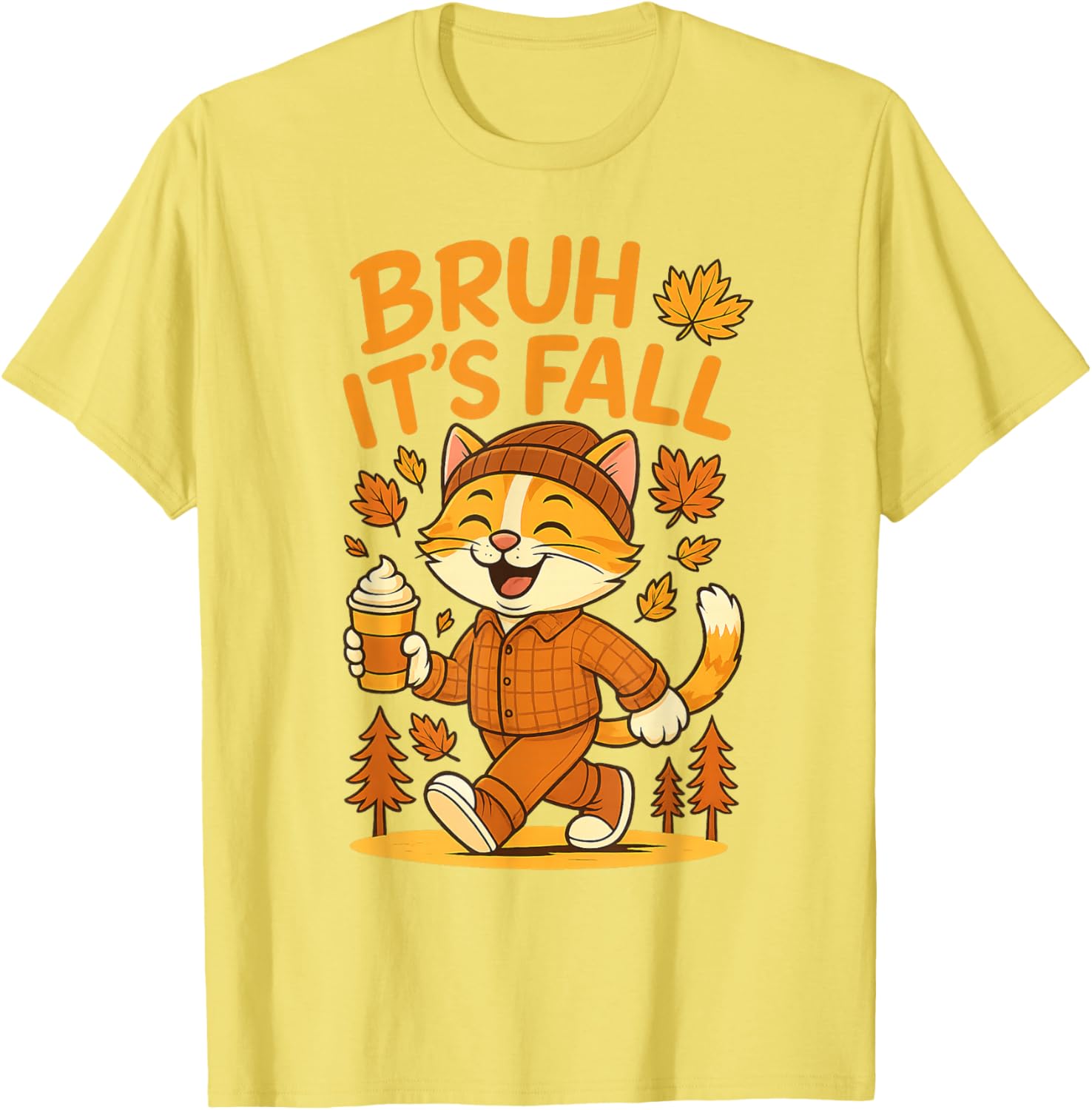 Get ready for autumn with this Bruh It’s Fall T-Shirt! Featuring a cheerful ginger cat in a brown plaid flannel shirt and beanie, happily holding a pumpkin spice latte, this design captures the cozy fall spirit. Surrounded by colorful autumn leaves and evergreen trees, the bold retro text Bruh It’s Fall makes this tee a fun seasonal statement.Designed for cat lovers, pumpkin spice fans, and fall enthusiasts, this shirt blends humor, comfort, and vintage-inspired style. The warm orange and brown tones create a cozy vibe that pairs perfectly with your favorite jeans, hoodie, or jacket.Whether you’re visiting a pumpkin patch, enjoying a latte at your favorite café, celebrating Thanksgiving, or dressing up for a casual Halloween outing, this shirt is your go-to fall outfit. It also makes a thoughtful gift for friends, family, students, or coworkers who can’t get enough of autumn.Celebrate the season, embrace the cozy vibes, and show off your love for cats, coffee, and fall with this unique design.