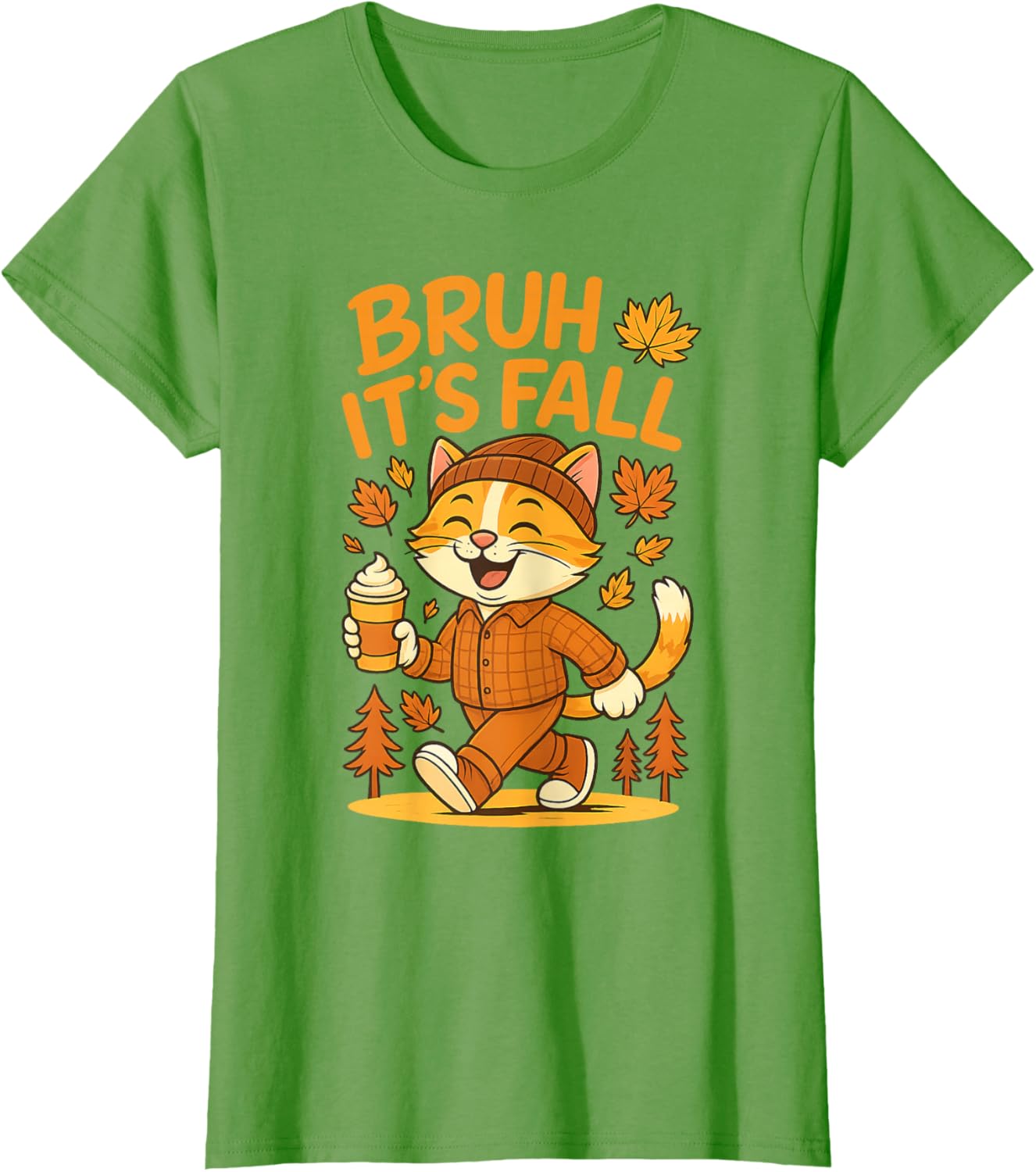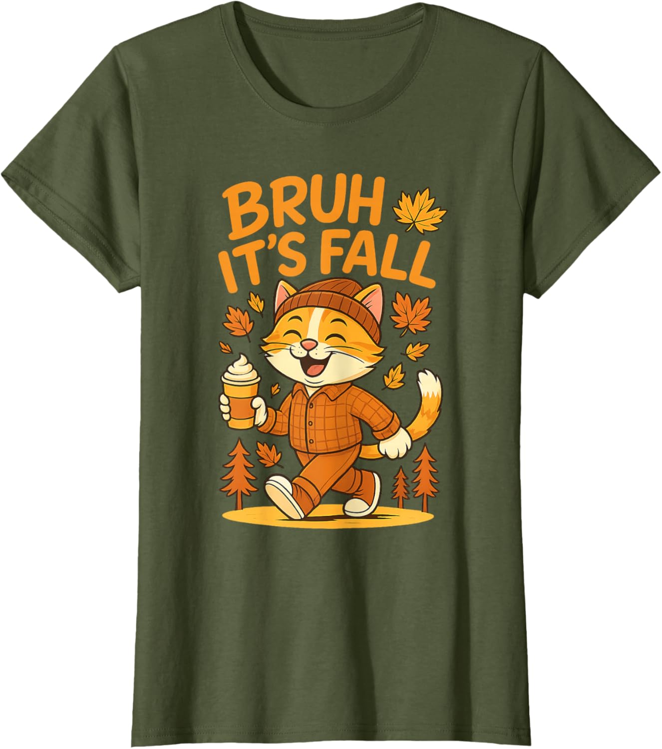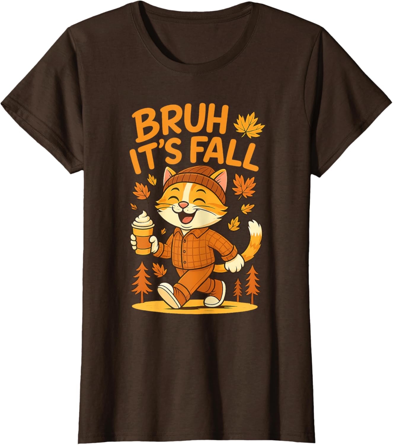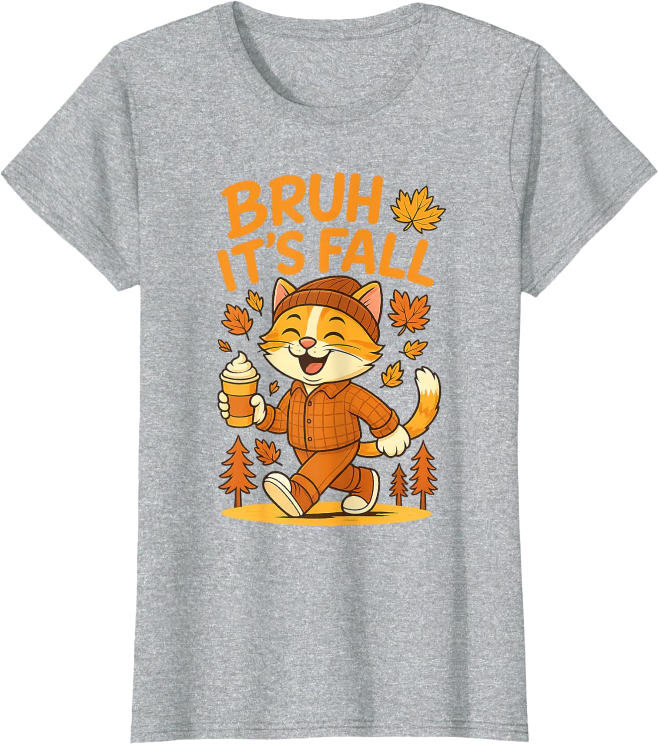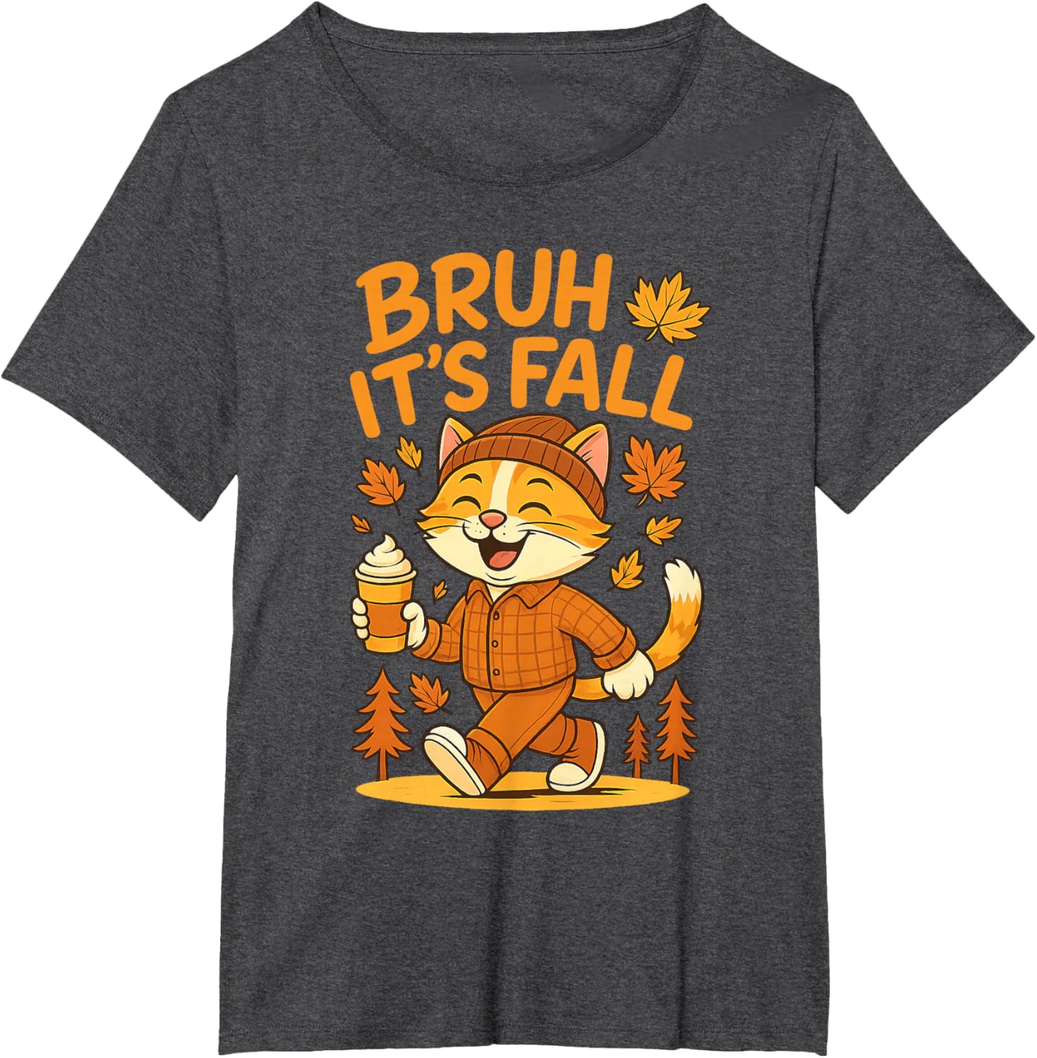 Get ready for autumn with this Bruh It’s Fall T-Shirt! Featuring a cheerful ginger cat in a brown plaid flannel shirt and beanie, happily holding a pumpkin spice latte, this design captures the cozy fall spirit. Surrounded by colorful autumn leaves and evergreen trees, the bold retro text Bruh It’s Fall makes this tee a fun seasonal statement.Designed for cat lovers, pumpkin spice fans, and fall enthusiasts, this shirt blends humor, comfort, and vintage-inspired style. The warm orange and brown tones create a cozy vibe that pairs perfectly with your favorite jeans, hoodie, or jacket.Whether you’re visiting a pumpkin patch, enjoying a latte at your favorite café, celebrating Thanksgiving, or dressing up for a casual Halloween outing, this shirt is your go-to fall outfit. It also makes a thoughtful gift for friends, family, students, or coworkers who can’t get enough of autumn.Celebrate the season, embrace the cozy vibes, and show off your love for cats, coffee, and fall with this unique design.