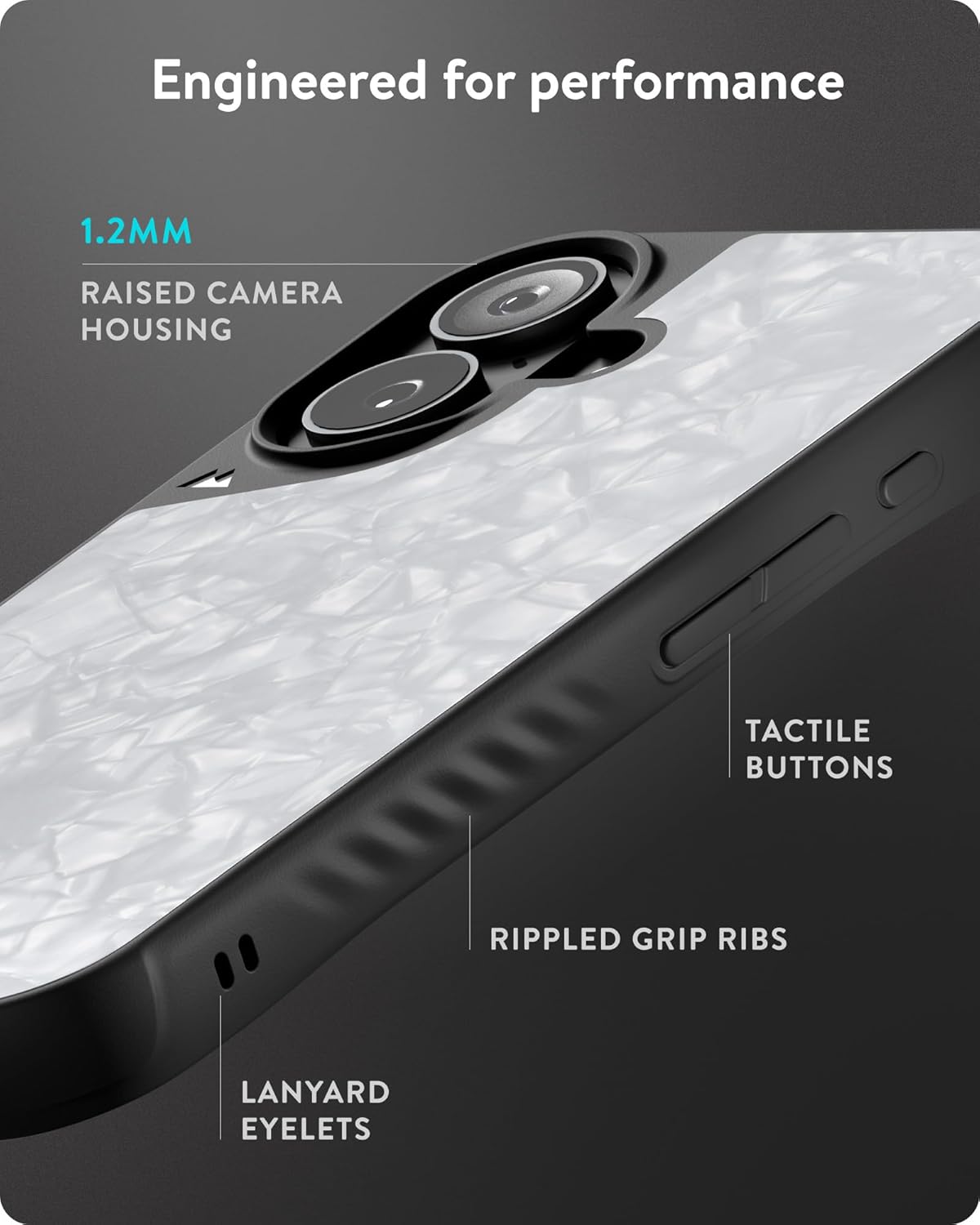 - Versterkte Camerabescherming – Ontworpen Met Een Stijve, Met Glas Gevulde Polycarbonaat Rand Om Apple’S Nieuwe Camerasysteem Te Beschermen Tegen Stoten En Krassen.