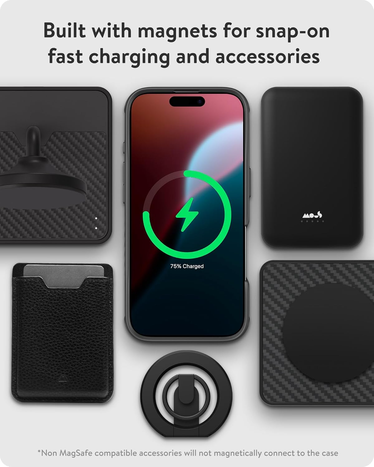 - Magsafe & Qi2-Compatibiliteit – Ingebouwd Magnetisch Array Ondersteunt Magsafe, Qi2 En Mous-Magnetische Accessoires, Met 15W Snel Draadloos Opladen En Handige Snap-On Functionaliteit.