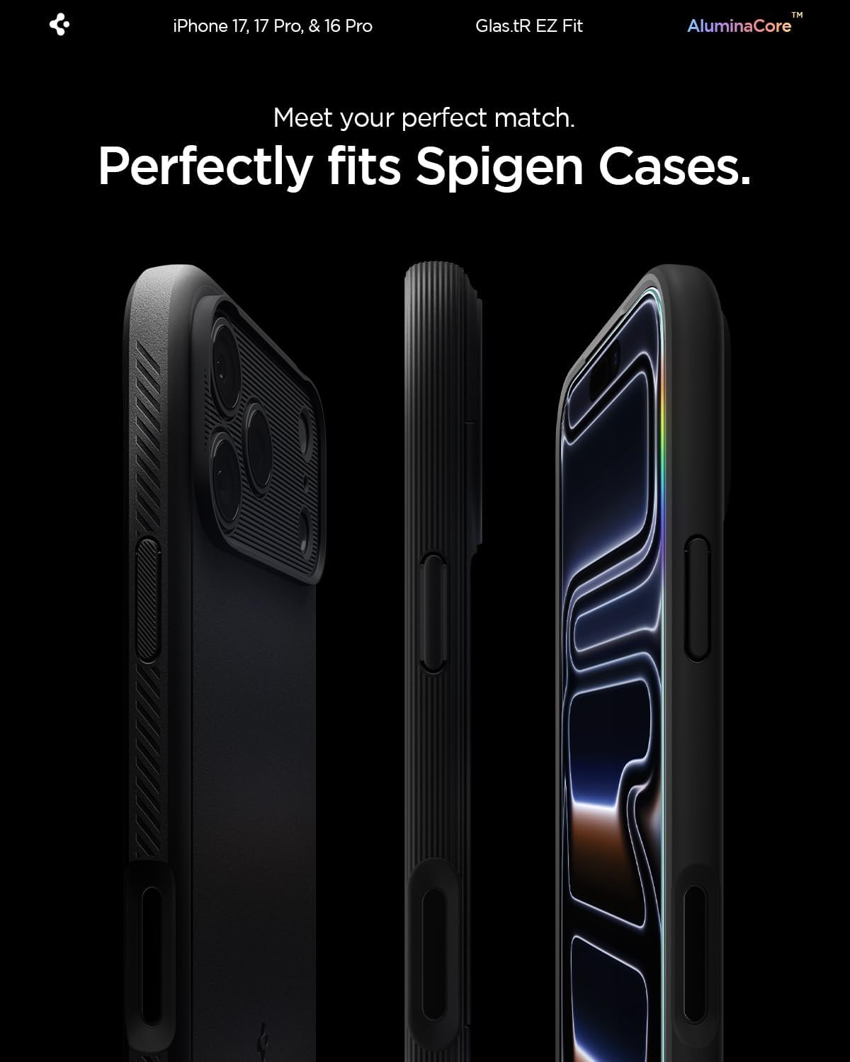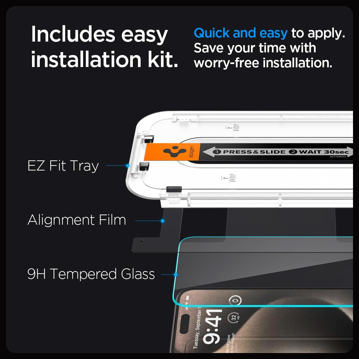 Spigen Glas.tR EZ Fit Screenprotector compatibel met iPhone 17 Pro/17, iPhone 16 Pro, 2 stuks, met sjabloon voor installatie, Case friendly, 9H Gehard Glas